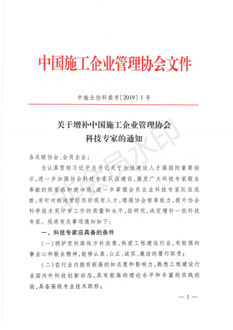 關(guān)于轉(zhuǎn)發(fā)《關(guān)于增補(bǔ)中國施工企業(yè)管理協(xié)會科技專家的通知》的通知