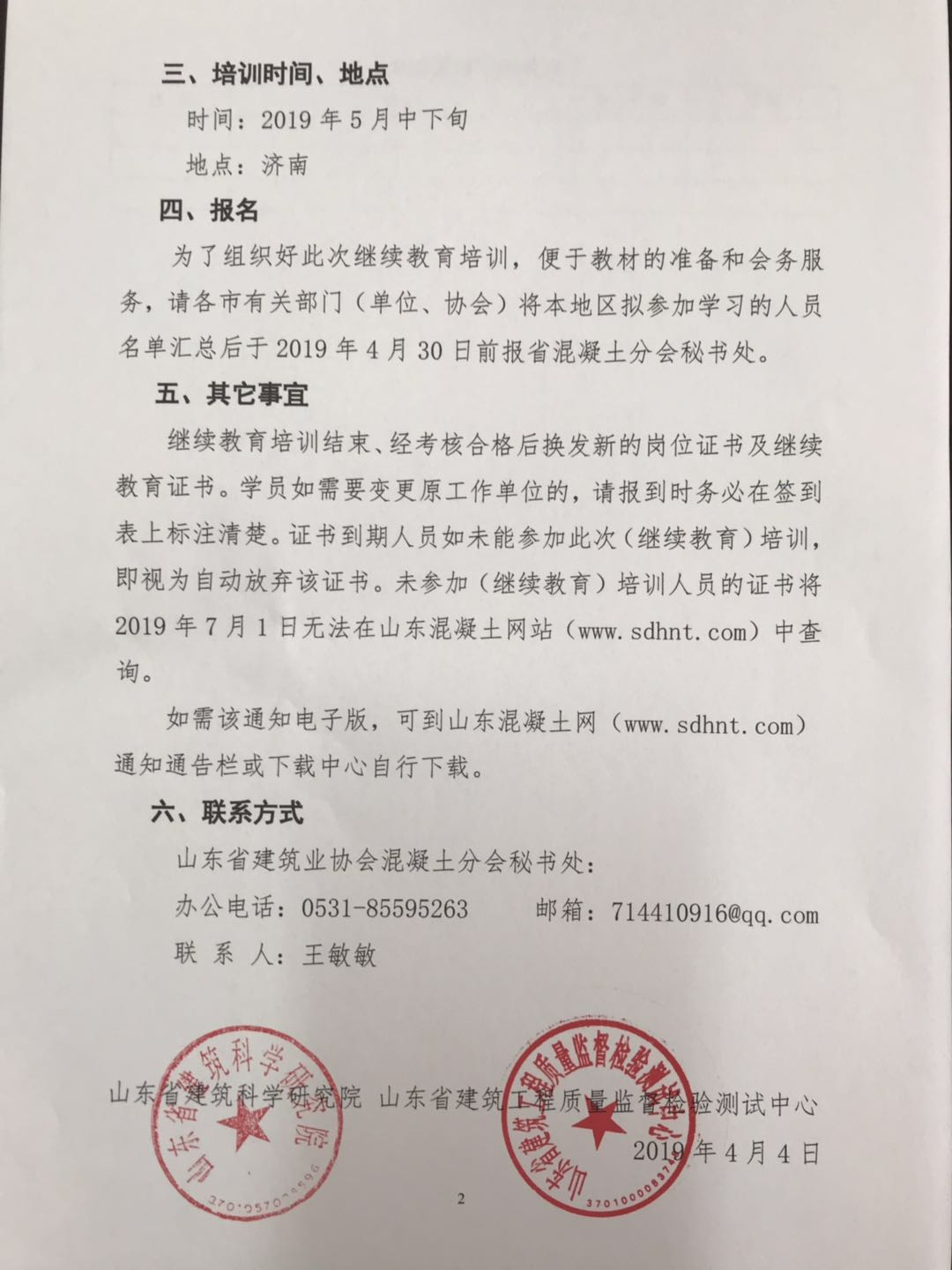 關(guān)于舉辦“山東省預(yù)拌混凝土企業(yè)試驗(yàn)室檢測(cè)及 質(zhì)量控制技術(shù)人員換發(fā)崗位證書” (繼續(xù)教育)培訓(xùn)的預(yù)備通知