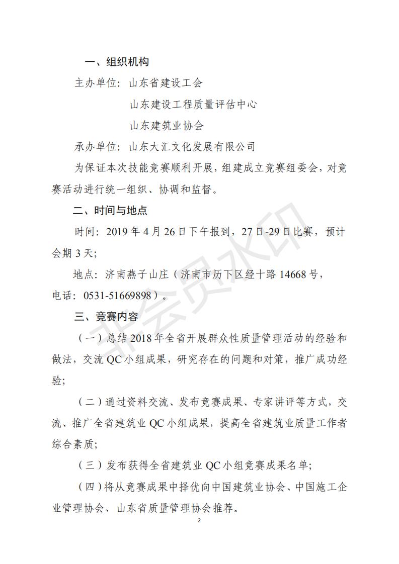 關(guān)于開展2019年度 山東省建筑業(yè)QC小組成果競賽的通知