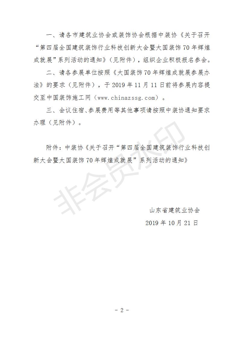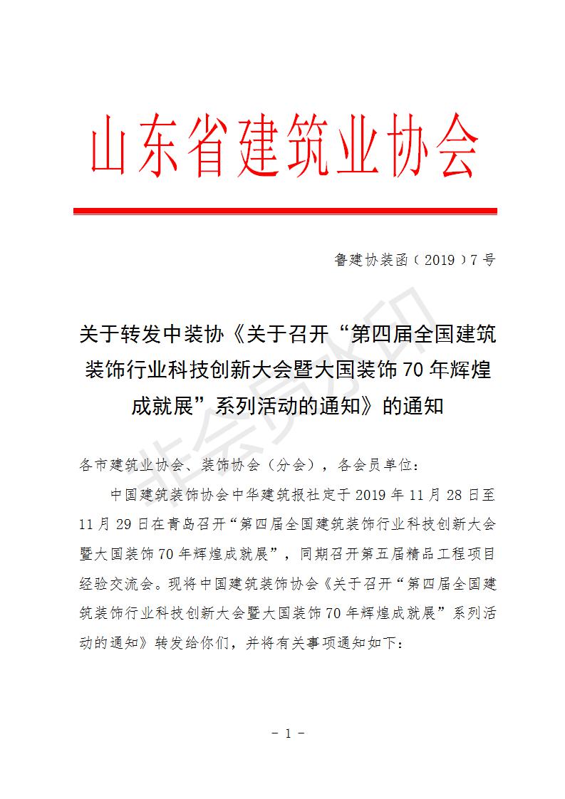 ![]() | 附件:中裝協(xié)《關(guān)于召開(kāi)“第四屆全國(guó)建筑裝飾行業(yè)科技創(chuàng)新大會(huì)暨大國(guó)裝飾70年輝煌成就展”系列活動(dòng)的通知》 |