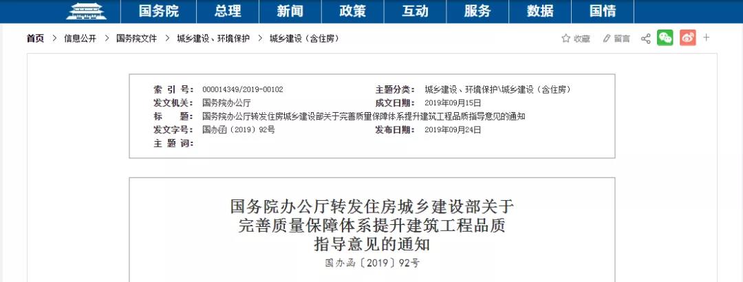 住房城鄉(xiāng)建設部《關于完善質(zhì)量保障體系提升建筑工程品質(zhì)的指導意見》已經(jīng)國務院同意,現(xiàn)轉發(fā)給你們,請認真貫徹落實。