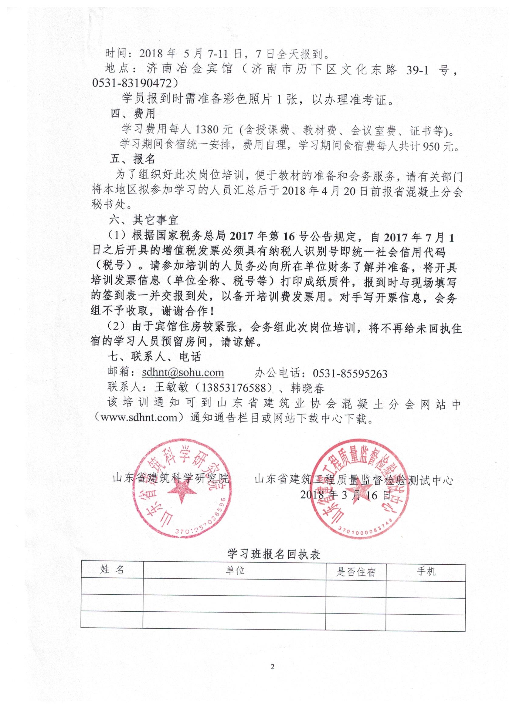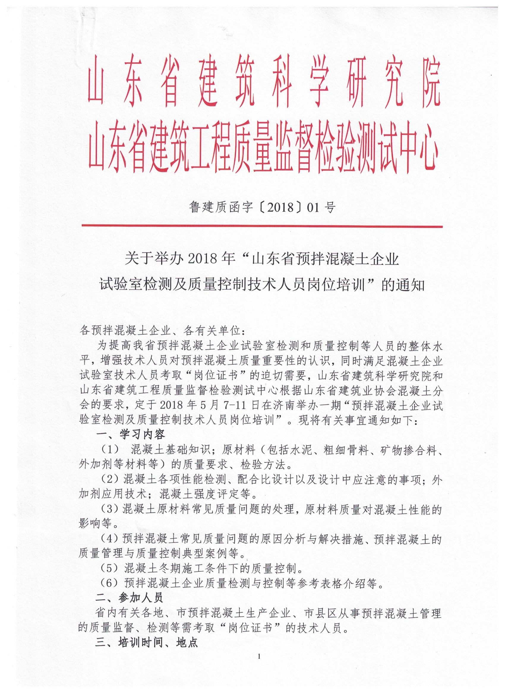 [轉(zhuǎn)發(fā)]關(guān)于舉辦2018年“山東省預(yù)拌混凝土企業(yè)試驗(yàn)室檢測及質(zhì)量控制技術(shù)人員崗位培訓(xùn)”的通知