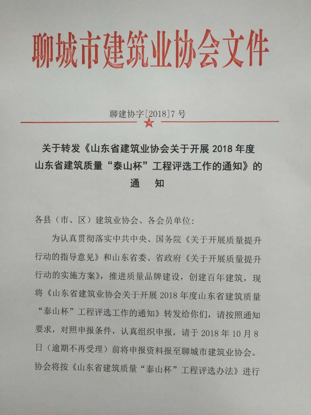 山東省建筑質(zhì)量“泰山杯”工程評(píng)選工作的通知》的 通 知